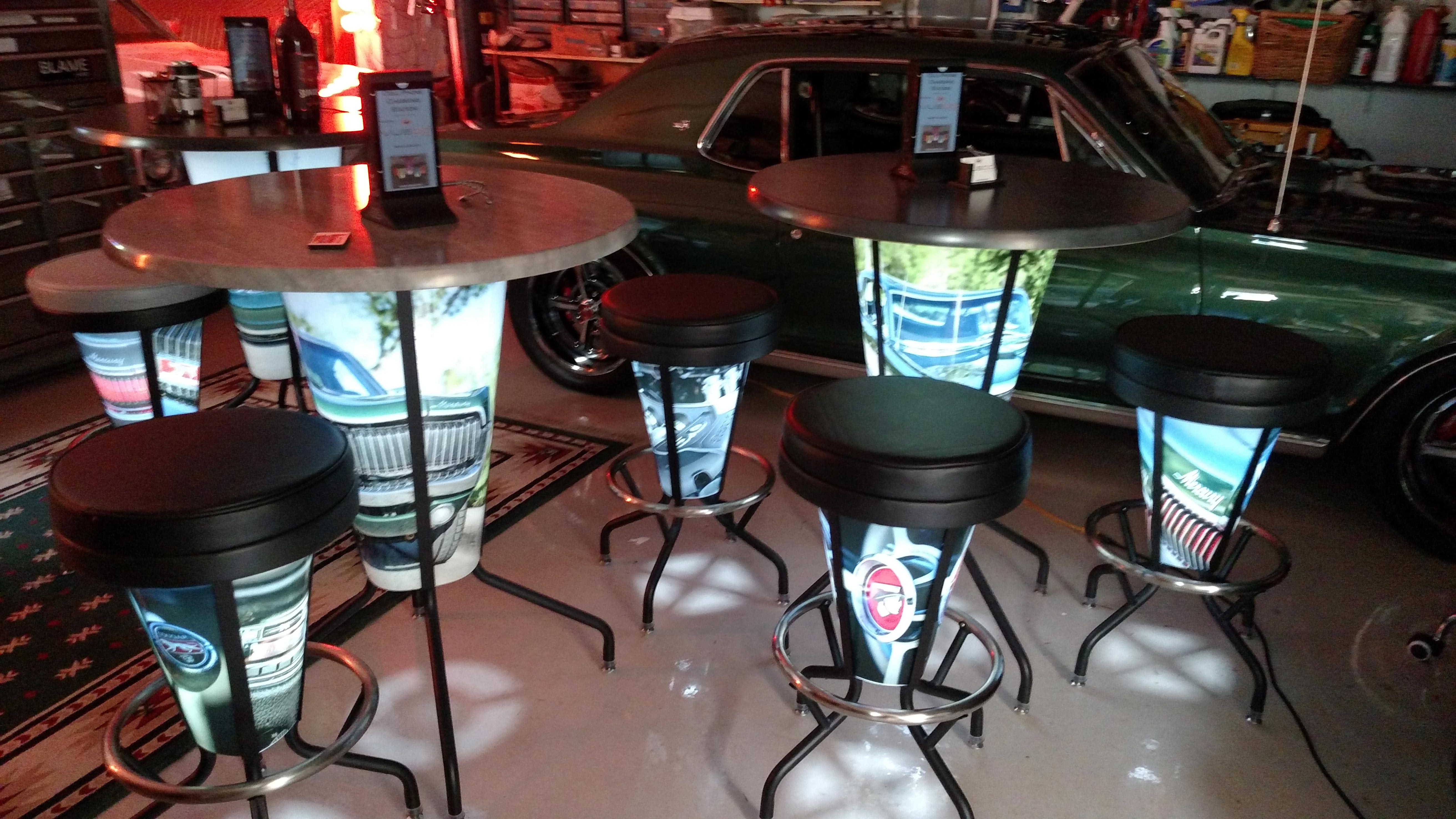 Holland Bar Stool’s LightEDecor furniture is unlike anything else on the market. The black wrinkle stool frame is constructed of commercial grade, electro-coated steel along with a 304 stainless steel foot ring and self-leveling glides. The seat is an impressive 16 ” diameter with 2? thick, dense foam that is covered by a marine grade black vinyl for superior comfort and durability. The lifetime warrantied, marine swivel utilizes 52 stainless steel ball bearings for smooth, easy movement. Now comes the fun part, the interchangeable graphic panels. Each stool features four interchangeable licensed logo, custom, or standard design panels. These panels are produced from durable lexan and are digitally printed with UV inks for crystal clear, vibrant graphics. Behind all this is a rechargeable LED light unit that is controlled by an IR remote control. The light will last up to 12 hrs on a single charge! The remote control allows you to brighten, dim, and switch between the 16 different static color options, or choose any of the 4 transitional settings (Flash, Strobe, Fade, and Smooth) and watch the colors rotate. If you are looking for something unique to spice up your porch, deck, patio, or even your man cave look no further than this all-weather indoor/outdoor lighted stool from the Holland Bar Stool Co.